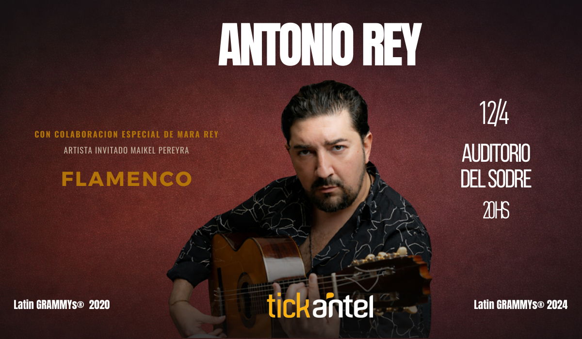 Antonio Rey regresa a Uruguay con un espectáculo imperdible, esta vez acompañado por su hermana Mara Rey, reconocida cantaora y bailaora, en pleno auge de su carrera internacional, actuando en los teatros más importantes del mundo junto a grandes figuras del flamenco. Ambos artistas son oriundos de Jerez de la Frontera, la cuna del flamenco, tierra donde nace este arte profundo y visceral, declarado Patrimonio Cultural Inmaterial de la Humanidad. Antonio Rey, guitarrista de sensibilidad única y técnica deslumbrante, cuenta con dos premios Latin Grammy (2020 y 2024) y fue nominado a los Grammy Awards 2025, consolidándose como una de las máximas figuras del flamenco contemporáneo a nivel mundial. El espectáculo propone un flamenco hondo y puro, cargado de emoción, fuerza y verdad. Cada nota, cada quejío y cada movimiento transportan al público directamente a España, a los sentimientos más profundos del alma, donde la música se convierte en experiencia y el escenario en un ritual. Antonio Rey en Concierto no es solo una cita para amantes del flamenco: es un espectáculo imprescindible para guitarristas, músicos y cantantes, una oportunidad única de presenciar en vivo a un artista de técnica extraordinaria, musicalidad profunda y expresión auténtica. Una verdadera clase magistral sobre el escenario, donde la guitarra dialoga con el cante y el baile en su máxima expresión. Un show inigualable, protagonizado por artistas de reconocimiento internacional. Antonio Rey ha compartido escenario y tocó junto a leyendas como Paco de Lucía, y hoy continúa llevando el flamenco a lo más alto del mundo. Una cita que no te podés perder.Una noche de arte, emoción y excelencia. El flamenco en su máxima expresión.